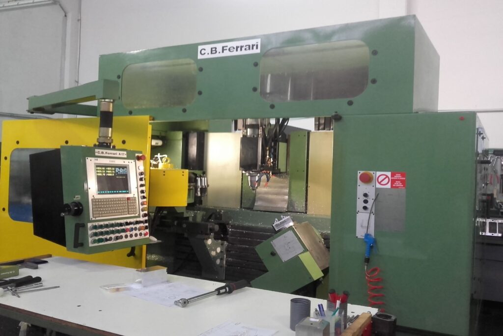 B150 (3 Assi)  Elexa E560  X: 850 mm  Y: 450 mm   Z: 500mm    Velocità: 16’000 rpm   Mag. utensili: 18 pos.